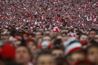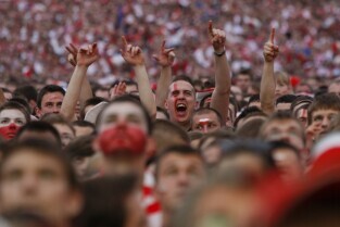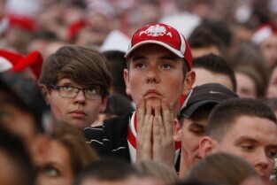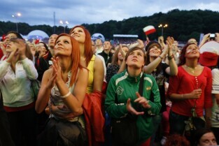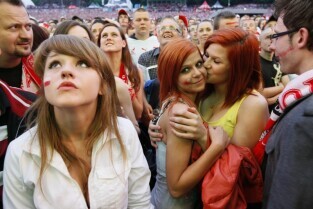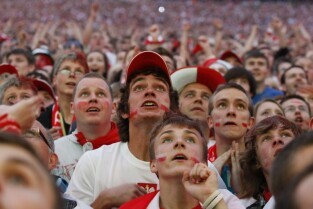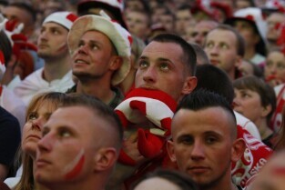 Gdańsk, Plac Zebrań Ludowych. Strefa Kibica (Fun Zone) podczas Mistrzostw UEFA Euro 2012. Mecz Polska-Czechy, który obejrzało blisko 40 tys. kibiców. Spotkanie zakończyło się wygraną Czechów 1:0.