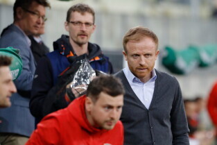 Gdańsk. Mecz Lechia Gdańsk-Cracovia. Nz. Trener Lechii Piotr Stokowiec.
