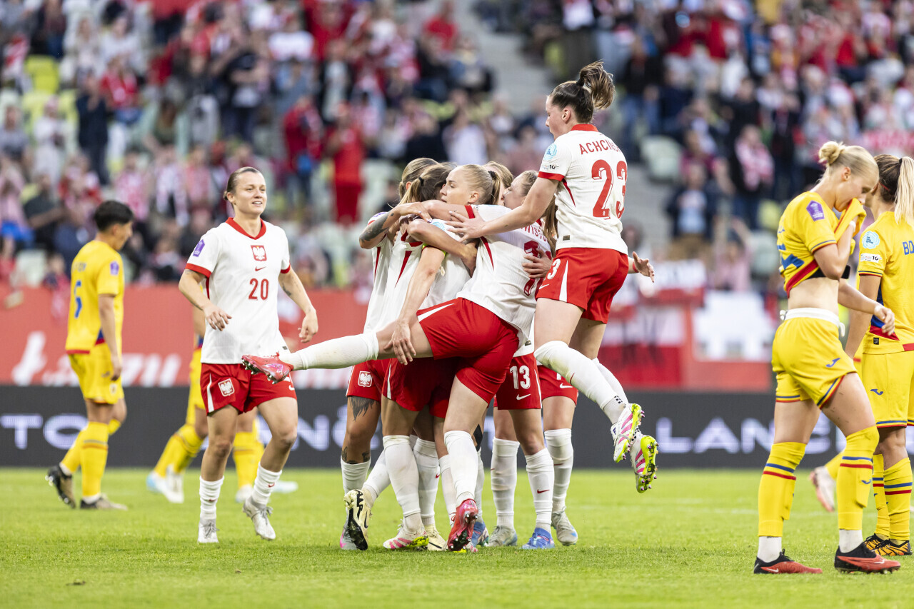 Gdańsk. Na stadionie Polsat Plus Arena odbył się mecz w piłce nożnej kobiet UEFA Woman's Nations League pomiędzy drużynami Polski i Rumunii