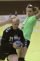 Gdańsk, Hala Widowiskowo-Sportowa AWFiS. Mecz piłkarek ręcznych AZS Łączpol AWFiS - EKS Start Elbląg. Nz Marta Karwecka--AZS Łączpol.