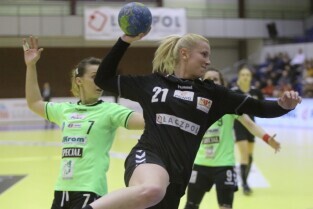 Gdańsk, Hala Widowiskowo-Sportowa AWFiS. Mecz piłkarek ręcznych AZS Łączpol AWFiS - EKS Start Elbląg. Nz Marta Karwecka-AZS Łączpol.