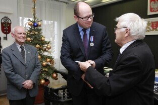 Urząd Miejski w Gdańsku. Prezydent Gdańska Paweł Adamowicz został uhonorowany medalem za Zasługi dla Światowego Związku Żołnierzy Armii Krajowej. Odznaczenie to wręczył mu Jerzy Grzywacz, prezes okręgu pomorskiego ŚZŻ AK.