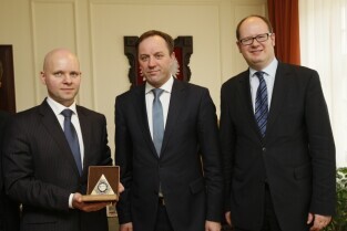 Prezes spółki InvestGDA Alan Aleksandrowicz otrzymał Medal Karty Trójmiasta, przyznawany przez Gazetę Wyborczą Trójmiasta za działania integrujące trójmiasto. Nz. od lewej: Prezes spółki InvestGDA Alan Aleksandrowicz, Marszałek Województwa Pomorskiego Mieczysław Struk, Prezydent Gdańska Paweł Adamowicz