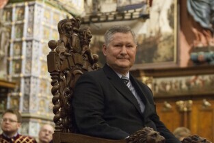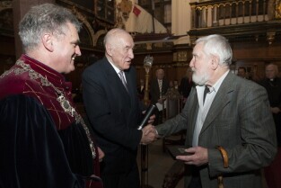 Gdańsk, Dwór Artusa. Uroczysta sesja Rady Miasta Gdańska, podczas której wręczono Medale Św. Wojciecha i Księcia Mściwoja II. Nz. laureat Medalu Księgia Mściwoja Zygfryd Korpalski