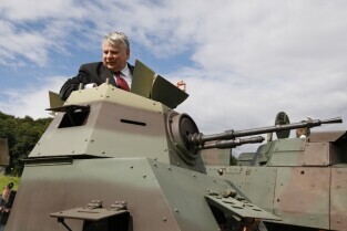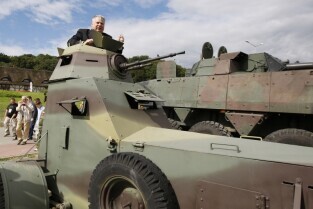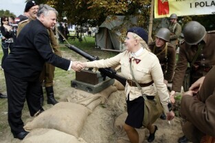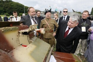 Gdańsk. Miasteczko Historii na Placu Zebrań Ludowych. Podczas militarnego festynu rekonstruktorzy prezentują uzbrojenie i umundurowanie z różnych epok historycznych. Można tutaj zobaczyć pojazdy i działa z początku II Wojny Światowej, a także współczesny transporter Rosomak czy średniowiecznych rycerzy.