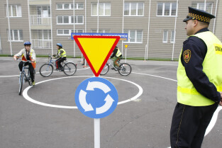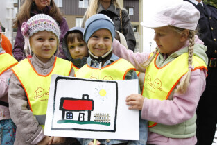 Otwarcie miasteczka ruchu drogowego przy Zespole Szkół Samochodowych w Gdańsku. Nz. grupa przedszkolaków