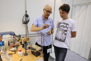 16 Międzynarodowe Targi Bursztynu "Ambermart" Nz Warsztaty złotnicze "Zrób sobie kolczyk" z mistrzami-Marcinem Tymińskim i Andrzejem Kupniewskim.