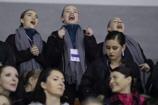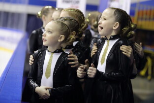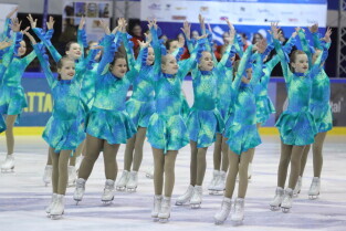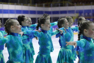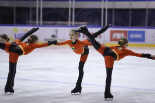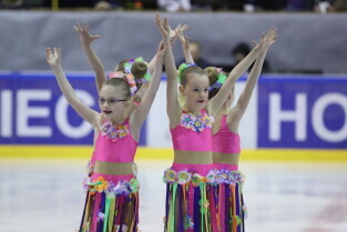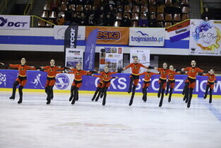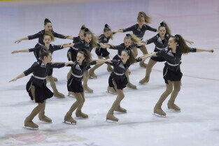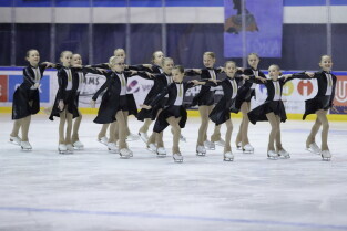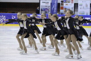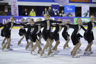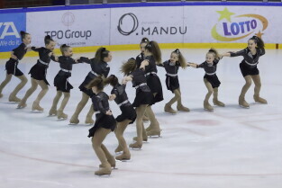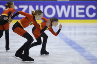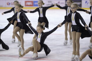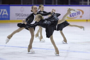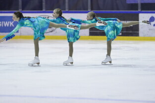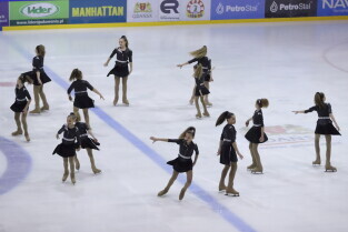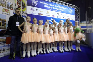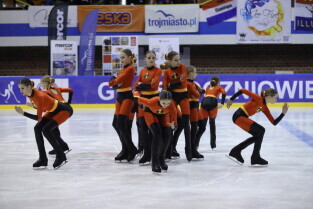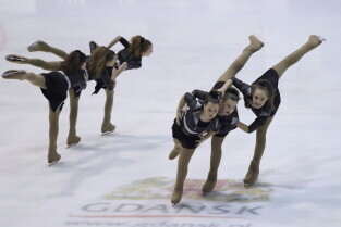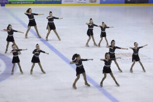 Gdańsk, hala Olivia. Międzynarodowe Zawody Hevelius Cup w łyżwiarstwie synchronicznym. Nz. Reprezentacja Polski Juniorów w łyżwiarstwie synchronicznym.