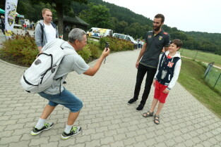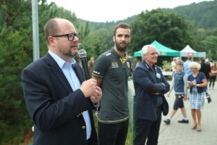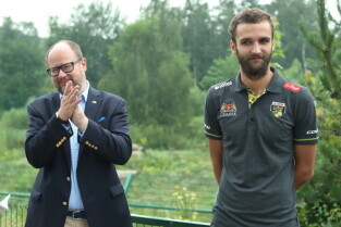 Gdańsk. Międzynarodowy Dzień Lwa w gdańskim ZOO. Nz. Prezydent Gdańska Paweł Adamowicz i Mateusz Mika-Siatkarz.