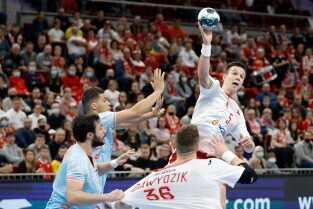 Gdańsk.Międzynarodowy turniej piłkarzy ręcznych 4 Nations Cup. Mecz Polska - Holandia.