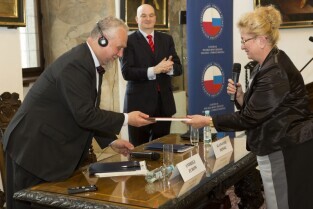 Wykład prof. Andrieja Zubowa pt. "Miejsce Rosji w świecie w XX i XXI w." w ramach cyklu "Gdańskie rozmowy o Polsce i Rosji". Nz. od lewej: Z-ca Prezydenta Gdańska Ewa Kamińska i Dyrektor Kancelarii Prezydenta Gdańska Helena Chmielowiec