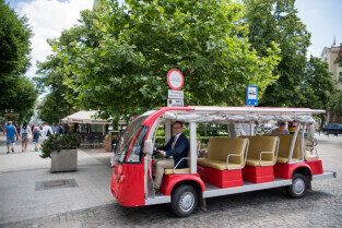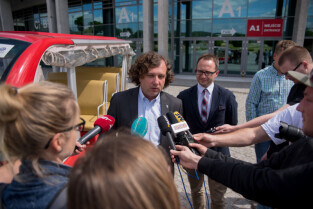 Gdańsk. Miejski eko-parking przy ERGO ARENIE na czas wakacji. Nz. Jacek Karnowski-Prezydent Sopotu