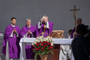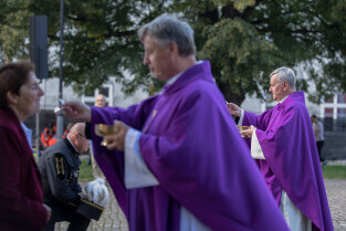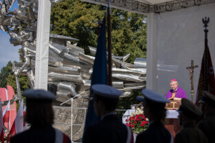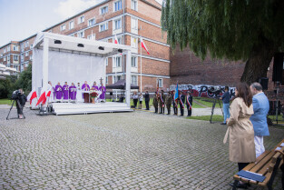 Gdańsk, Plac Obrońców Poczty Polskiej. Miejskie obchody 81 Rocznicy wybuchu II Wojny Światowej. Nz. Biskup pomocniczy Archidiecezji Gdańskiej Wiesław Szlachetka