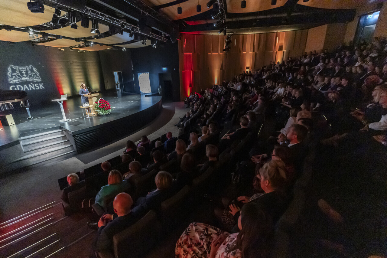 Gdańsk. Miejskie obchody Dnia Edukacji Narodowej, wręczenie nagród przez prezydent Gdańska Aleksandrę Dulkiewicz.