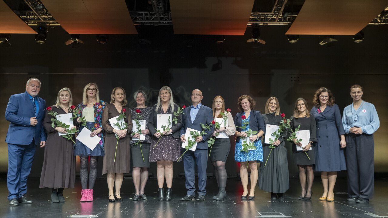 Gdańsk. Miejskie obchody Dnia Edukacji Narodowej, wręczenie nagród przez prezydent Gdańska Aleksandrę Dulkiewicz.