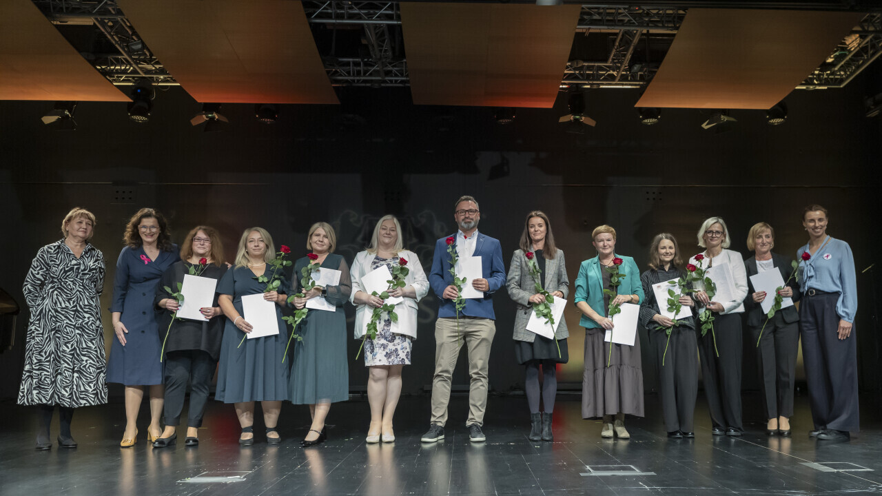 Gdańsk. Miejskie obchody Dnia Edukacji Narodowej, wręczenie nagród przez prezydent Gdańska Aleksandrę Dulkiewicz.