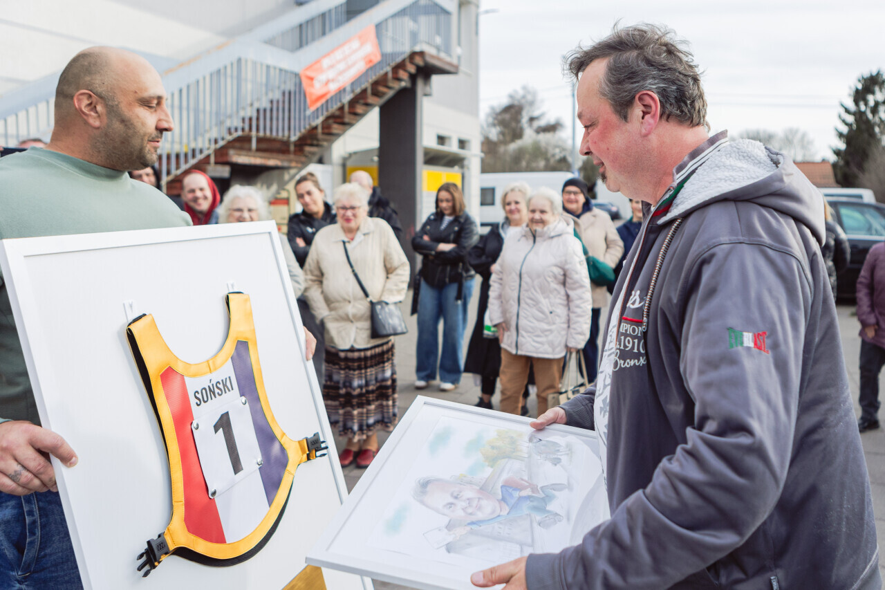 Mieszkańcy dzielnicy Przeróbka, żegnają uroczyście ulubionego listonosza