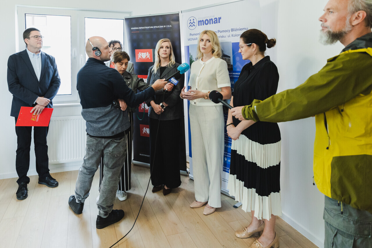 Gdańsk. Mieszkania treningowe przy ulicy Kolorowej oddano do użytku. Mieszkania treningowe ze wsparciem. W wydarzeniu brali udział, Aleksandra Dulkiewicz, prezydent Gdańska, Emilia Lodzińska, zastępczyni prezydenta ds. rozwoju przestrzennego i mieszkalnictwa, Aleksandra Krzywosz, prezes Gdańskiej Infrastruktury Społecznej, Agnieszka Nowak – dyrektor Pomorskiego Centrum Pomocy Bliźniemu MONAR-MARKOT, Elżbieta Zielińska, przewodnicząca Stowarzyszenia MONAR