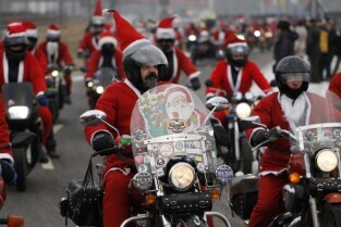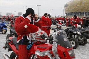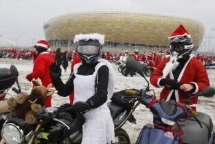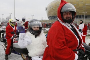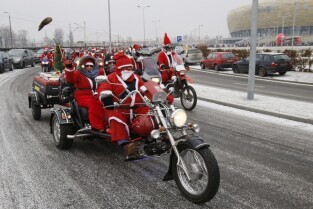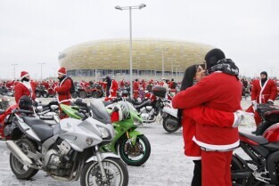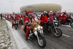 Mikołaje na Motocyklach. Start charytatywnej parady z parkingu przed PGE Areną Gdańsk, której uczestnicy w przebraniach św. Mikołaja wyruszyli na Skwer Kościuszki w Gdyni. Celem akcji jest zebranie pieniędzy, z których zakupione zostaną obiady dla najbiedniejszych dzieci ze szkół i ośrodków szkolno-wychowawczych.