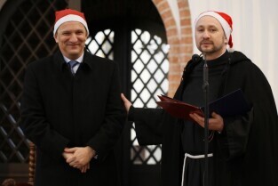 Mikołajki w kościele św. Trójcy w Gdańsku połączone z happeningiem "Popiszczmy Razem!" oraz uroczystym oddaniem do użytku zrekonstruowanej szafy organowej. Nz. od lewej: Prezes GIWK Sp. z o.o. Jacek Skarbek, Gwardian Klasztoru Franciszkanów o. Tomasz Jank