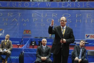 Gdańsk, Ergo Arena. Mistrzostwa Europy 2011 w Tenisie Stołowym. Nz. przemawia Prezydent Sopotu Jacek Karnowski