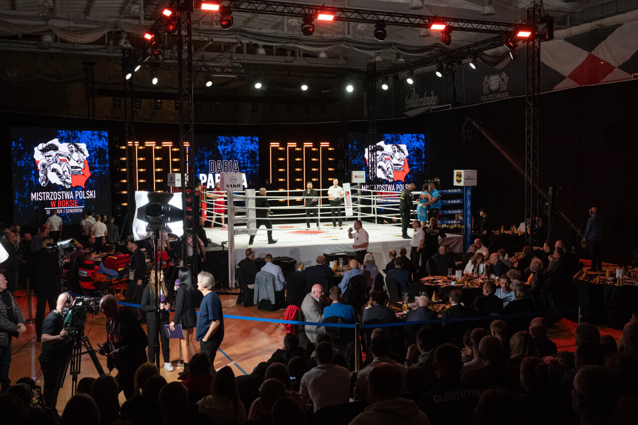 Gdańsk, Hala sportowa Politechniki Gdańskiej. Walki finałowe pucharu Mistrzostw Polski w boksie.