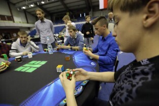 Mistrzostwa Polski w speedcubingu. Wśród konkurencji m.in. układanie z zamkniętymi oczami, jedną ręką i stopami, tworzenie wielkich mozaikowych obrazów.