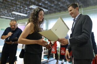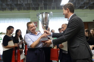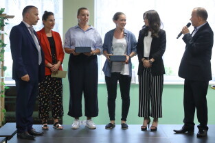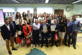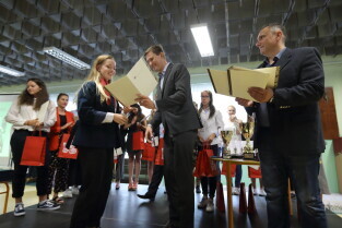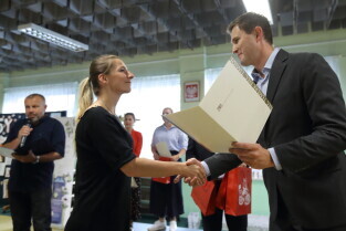 Gdańsk. Uroczystość wręczenia dyplomów i nagród rzeczowych unihokeistkom Olimpii za zdobycie mistrzostwa Polski.