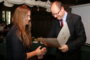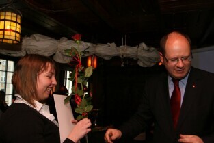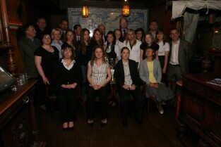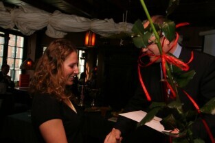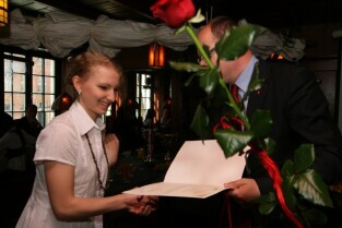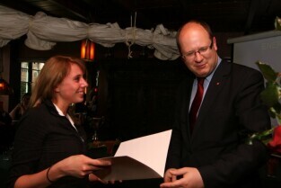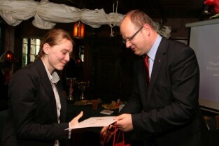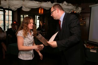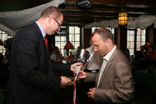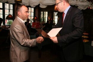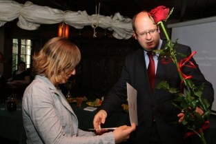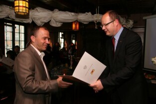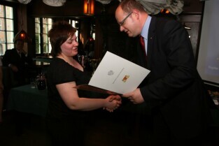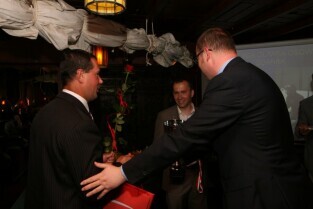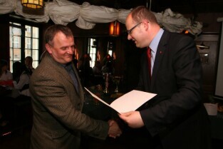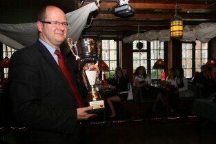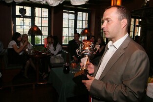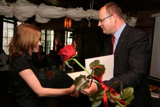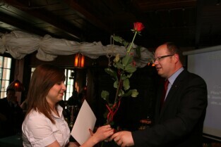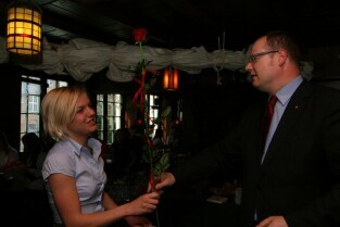 Gratulacje Prezydenta Gdańska Pawła Adamowicz dla Mistrzyń Unihokeja Polski Kobiet. Gdańsk, restauracja Latający Holender