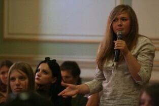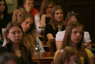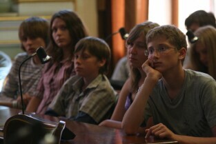 Gdańsk, Nowy Ratusz. Spotkanie z Prezydentem Gdańska i Przewodniczący Rady Miasta białoruskiej młodzieży z zdelegalizowanego liceum w Mińsku