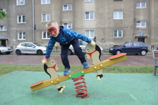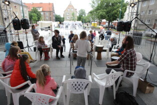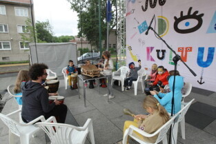 Gdańsk Mobilny dom kultury w Nowym Porcie przy placu Gustkowicza.