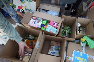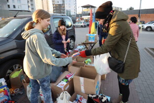 Mobilny punkt zbiórki na rzecz pomocy Ukrainie.