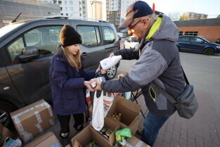 Gdańsk Morena. Mobilny punkt zbiórki na rzecz pomocy Ukrainie.