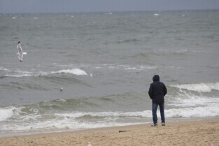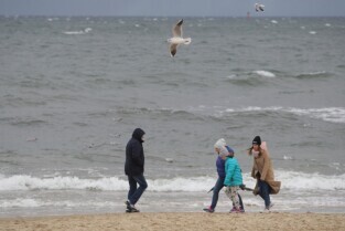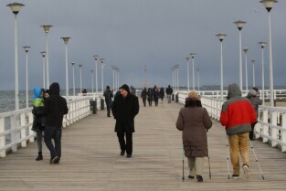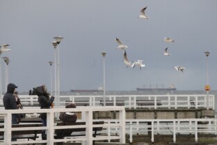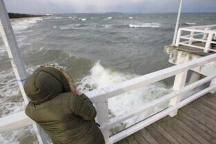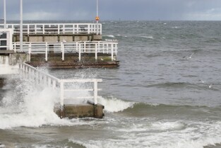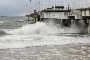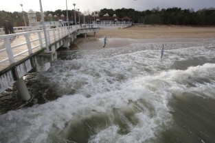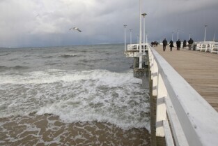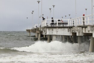 Gdańsk. Molo w Brzeźnie, sztormowy wiatr na całym wybrzeżu województwa pomorskiego.