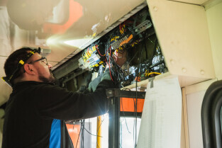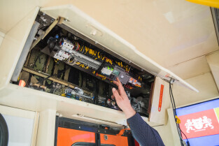 Prace instalatorskie we wnętrzu modernizowanego pojazdu