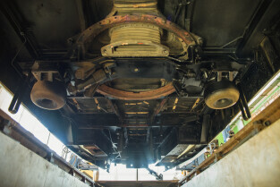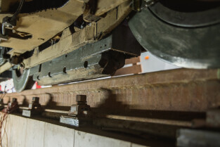 Widok na zregenerowane podwozie - w tym miejscu montuje się wózek napędowy