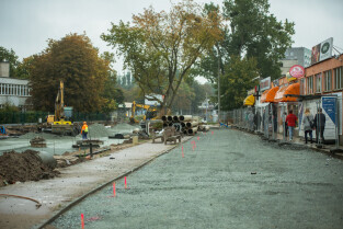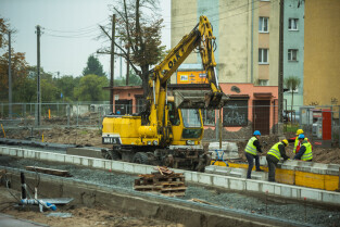 Gdańsk, ul. Wosia Budzysza. Modernizowane torowiska na Stogach