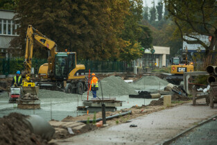 Gdańsk, ul. Stryjewskiego. Modernizowane torowiska na Stogach