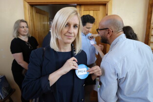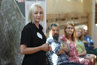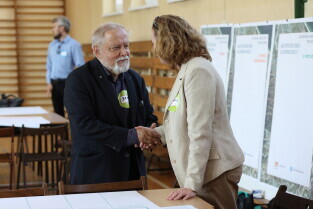 Gdańsk. Moderowane warsztaty dla mieszkańców. Uczestnicy odpowiadali m.in. na pytanie: jakie zmiany obserwujemy obecnie w okolicy alei Grunwaldzkiej? Nz. Prof. Piotr Lorens Architekt Miasta Gdańska i Dyrektor Biura Rozwoju Gdańska Edyta Damszel-Turek