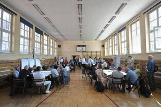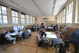 Gdańsk. Moderowane warsztaty dla mieszkańców. Uczestnicy odpowiadali m.in. na pytanie: jakie zmiany obserwujemy obecnie w okolicy alei Grunwaldzkiej? Nz. Prof. Piotr Lorens Architekt Miasta Gdańska.