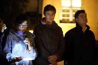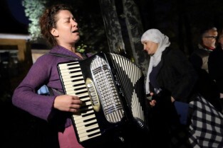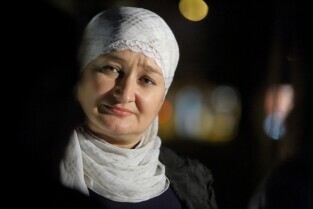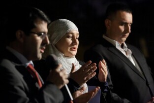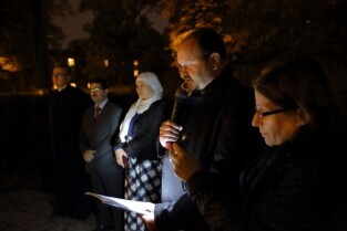 Gdański Cmentarz Nieistniejących Cmentarzy. Modlitwa Ekumeniczna w intencji Uchodźców. Nz Uchodźczyni z Czeczenii Khedi Alievej