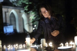 Gdański Cmentarz Nieistniejących Cmentarzy. Modlitwa Ekumeniczna w intencji Uchodźców. Nz Organizatorka Modlitwy Zofia Lisiecka