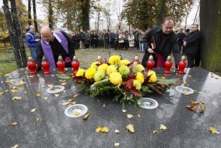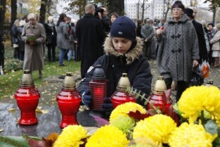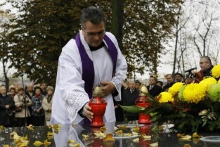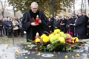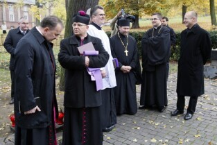 Międzywyznaniowa modlitwa za zmarłych w dniu Wszystkich Świętych. Gdańsk, Cmentarz Nieistniejących Cmentarzy przy ul. 3 maja.