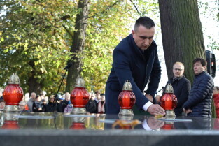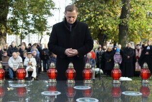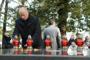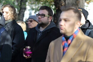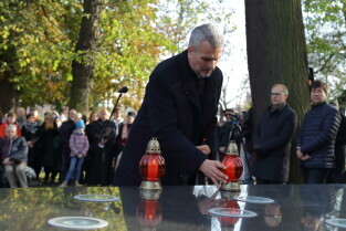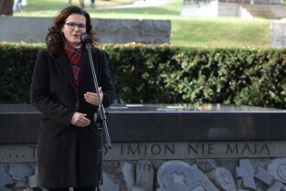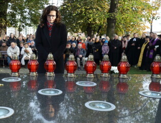 Gdańsk. Cmentarz - Pomnik Nieistniejących Cmentarzy. Modlitwa międzywyznaniowa za tych , którzy żyli i spoczęli na gdańskiej ziemi. Nz. Prezydent Gdańska Aleksandra Dulkiewicz.