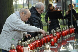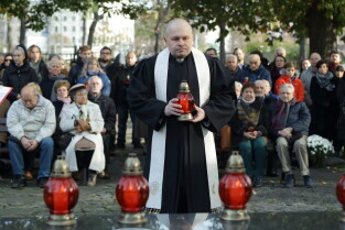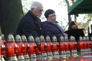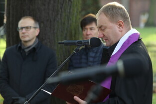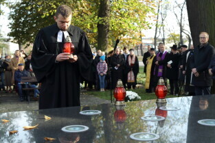 Gdańsk. Cmentarz - Pomnik Nieistniejących Cmentarzy. Modlitwa międzywyznaniowa za tych , którzy żyli i spoczęli na gdańskiej ziemi.