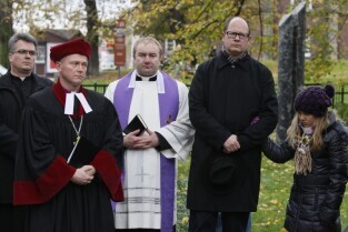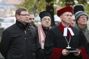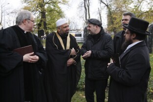 Gdańsk, Cmentarz Nieistniejących Cmentarzy przy ul. 3 Maja. Modlitwa międzywyznaniowa w dniu Wszystkich Świętych, w której udział wzięli przedstawiciele wyznań religijnych obecnych w Gdańsku