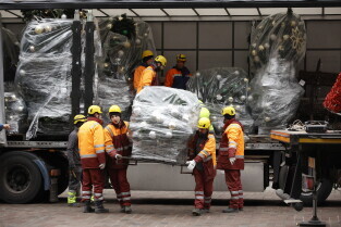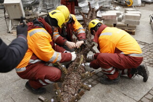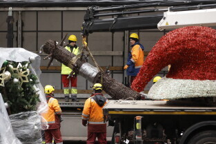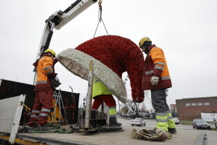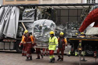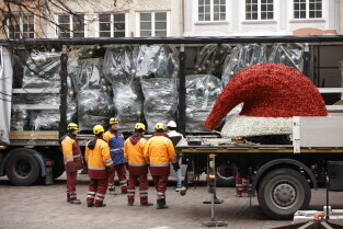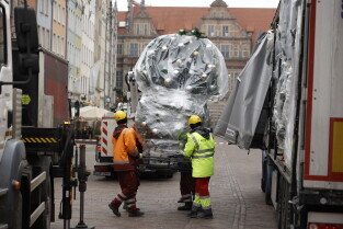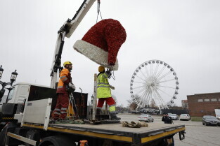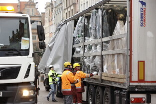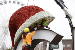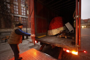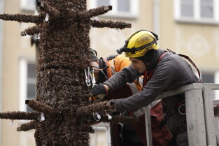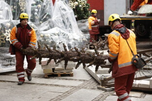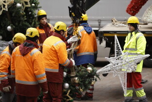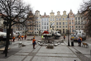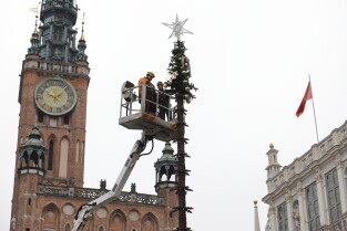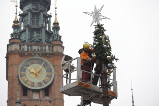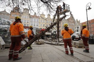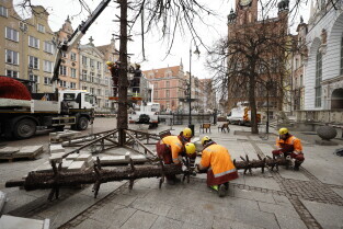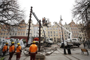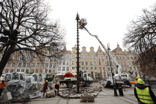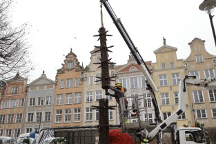 Montaż choinki na Długim Targu i przystrojenie napisu Gdańsk