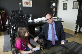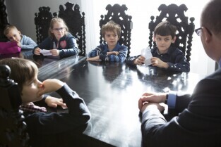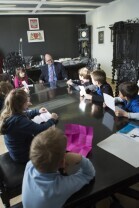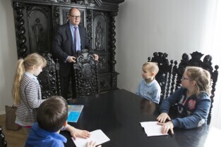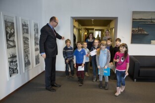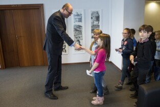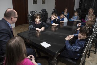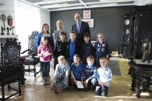 Urząd Miejski w Gdańsku. Spotkanie Prezydenta Gdańska Pawła Adamowicza z uczniami drugiej klasy Morskiej Niepublicznej Szkoły Podstawowej w Gdańsku