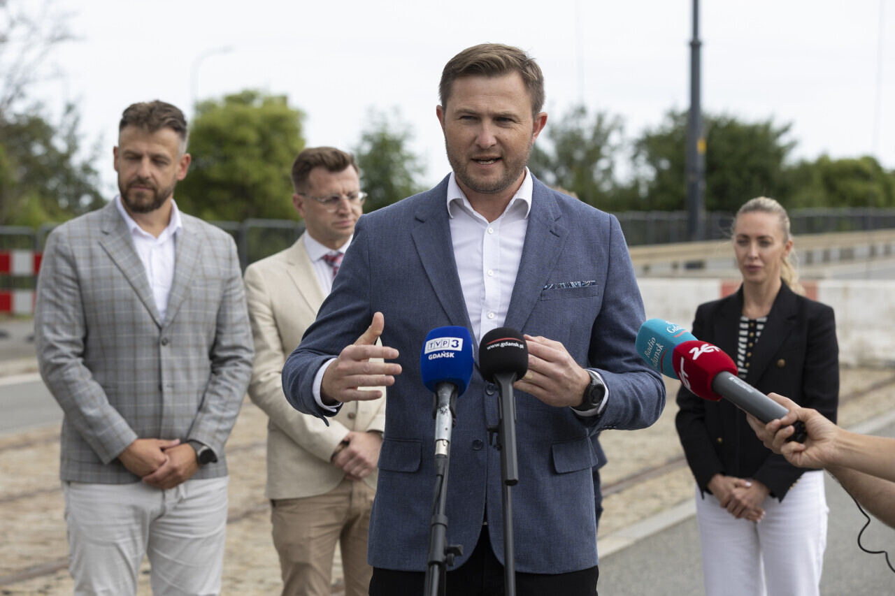 Gdańsk. Most Siennicki, bieżące działania - briefing prasowy z udziałem: Piotr Grzelak, zastępca prezydenta Gdańska ds. zrównoważonego rozwoju i gospodarki, Krzysztof Małkowski, dyrektor Dyrekcji Rozbudowy Miasta Gdańska, Łukasz Kłos, dyrektor Zarządu Transportu Miejskiego i Anna Bobrowska, zastępca dyrektora Gdańskiego Zarządu Dróg i Zieleni.