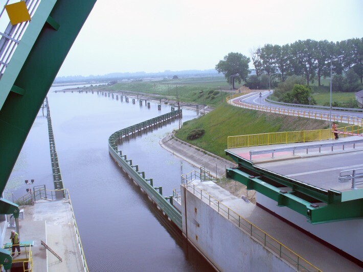 Most zwodzony nad śluzą w Przegalinie” otwiera drogę wodną na Żuławy. Most jest szerokości8,7 m, z dwukierunkową drogą rowerową i chodnikiem dla pieszych. Czas otwierania/zamykania wynosi 110 s. Całkowita długość przęsła wynosi22,58 m. Koszt budowy wynosi 11,6 mln PLN, z czego Unia Europejska przyznała dofinansowanie w wysokości 60% tj. ok. 7 mln PLN.